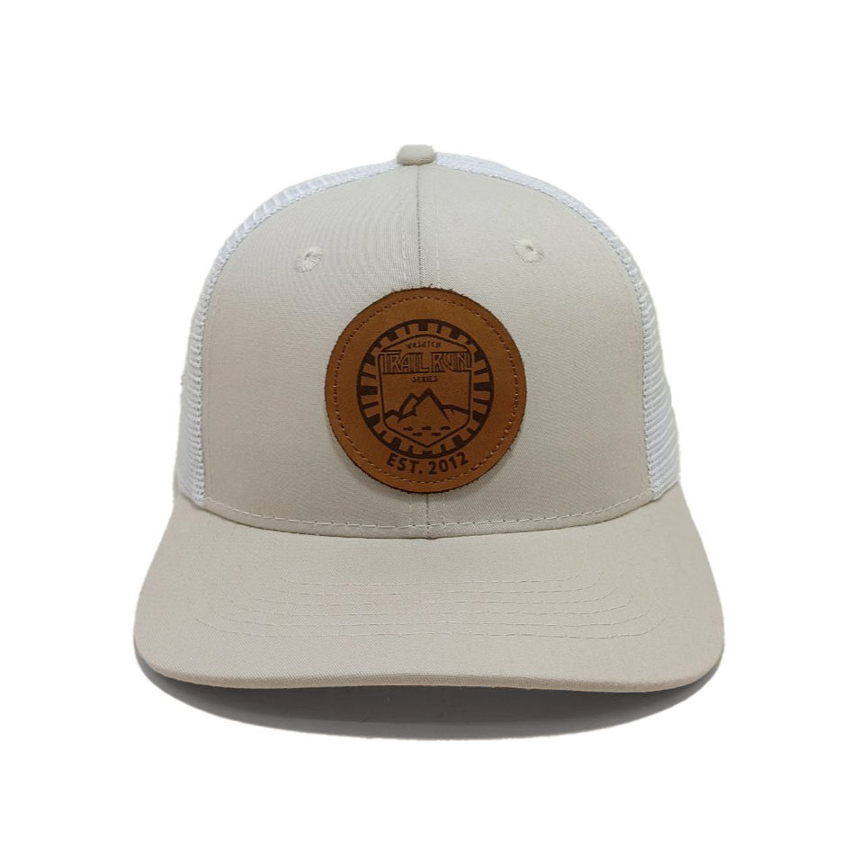 Fabriqué dans une usine du Vietnam, chapeau de camionneur en maille blanche personnalisé à 6 panneaux en cuir, mode vintage et confortable