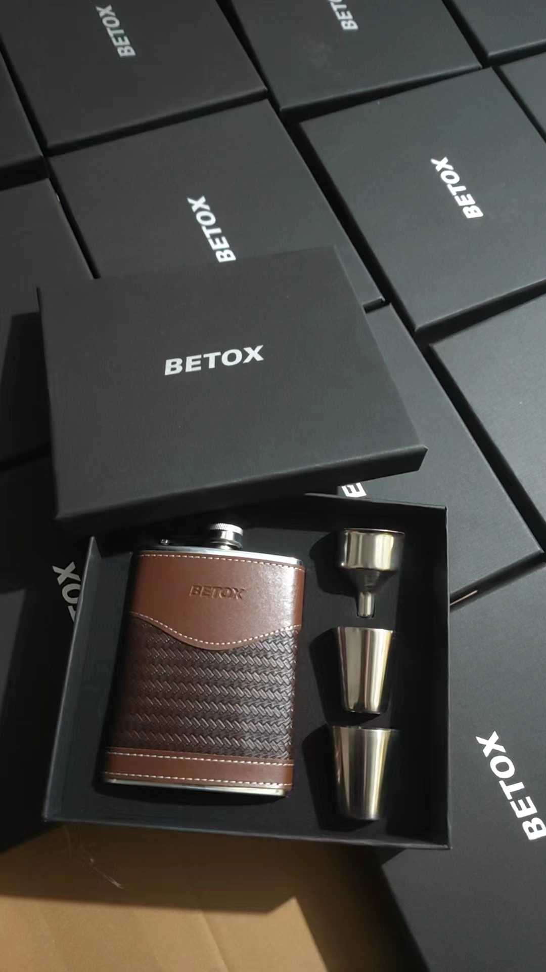 Boîte-cadeau de flacon d'alcool portable en acier inoxydable pour whisky en cuir personnalisé 2 tasses de flacon de hanche de 8 oz pour hommes cadeau de Noël bon marché