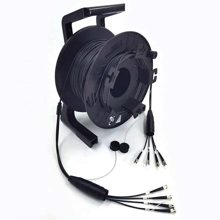 Longueur personnalisée 500FT LC ST 4 6 8 12 Fibres Câble de raccordement à fibre optique tactique blindé avec enrouleur de câble Flight Case pour événement AV