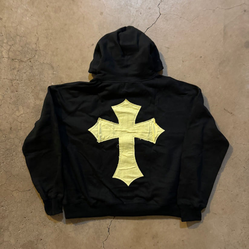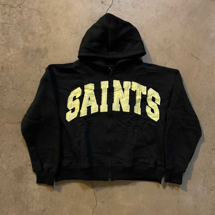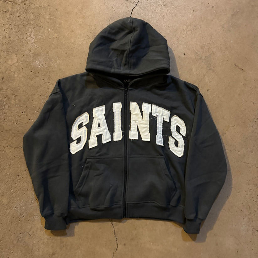 Lettre personnalisée 100% coton surdimensionné en détresse Patch broderie pierre lavage à l'acide fermeture éclair culture bouffée impression appliques hommes sweats à capuche