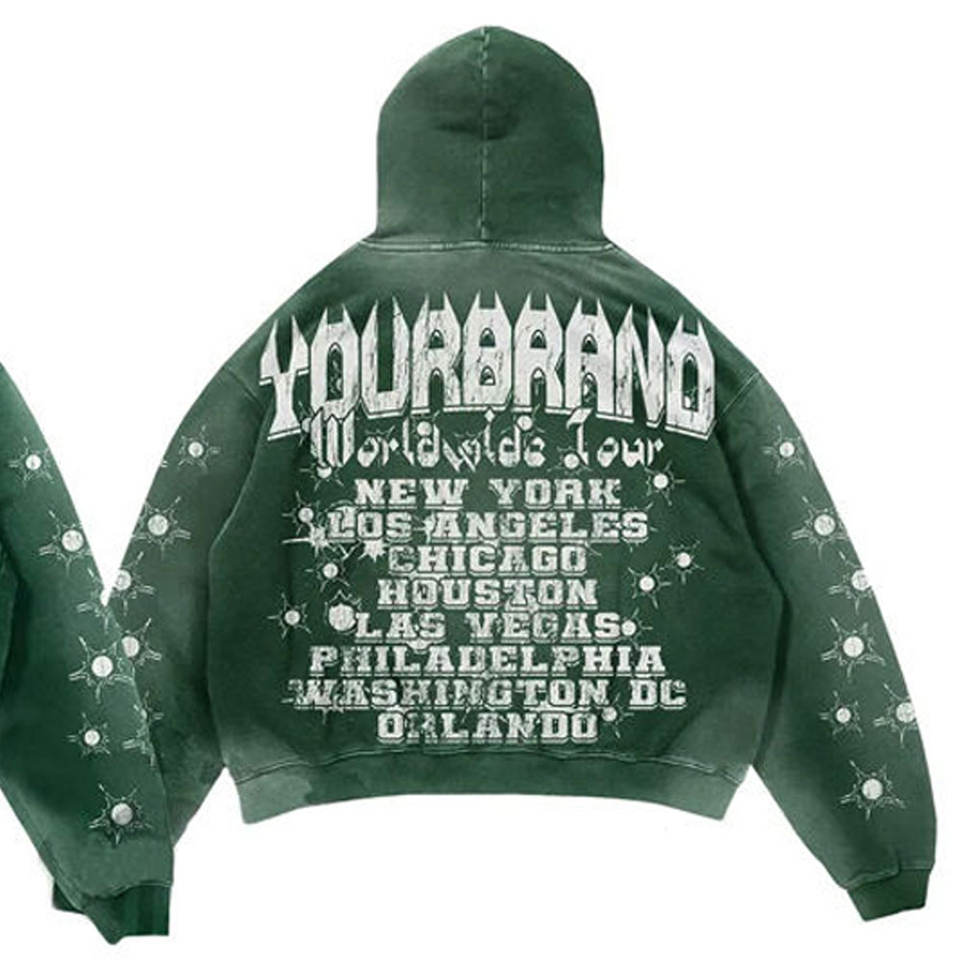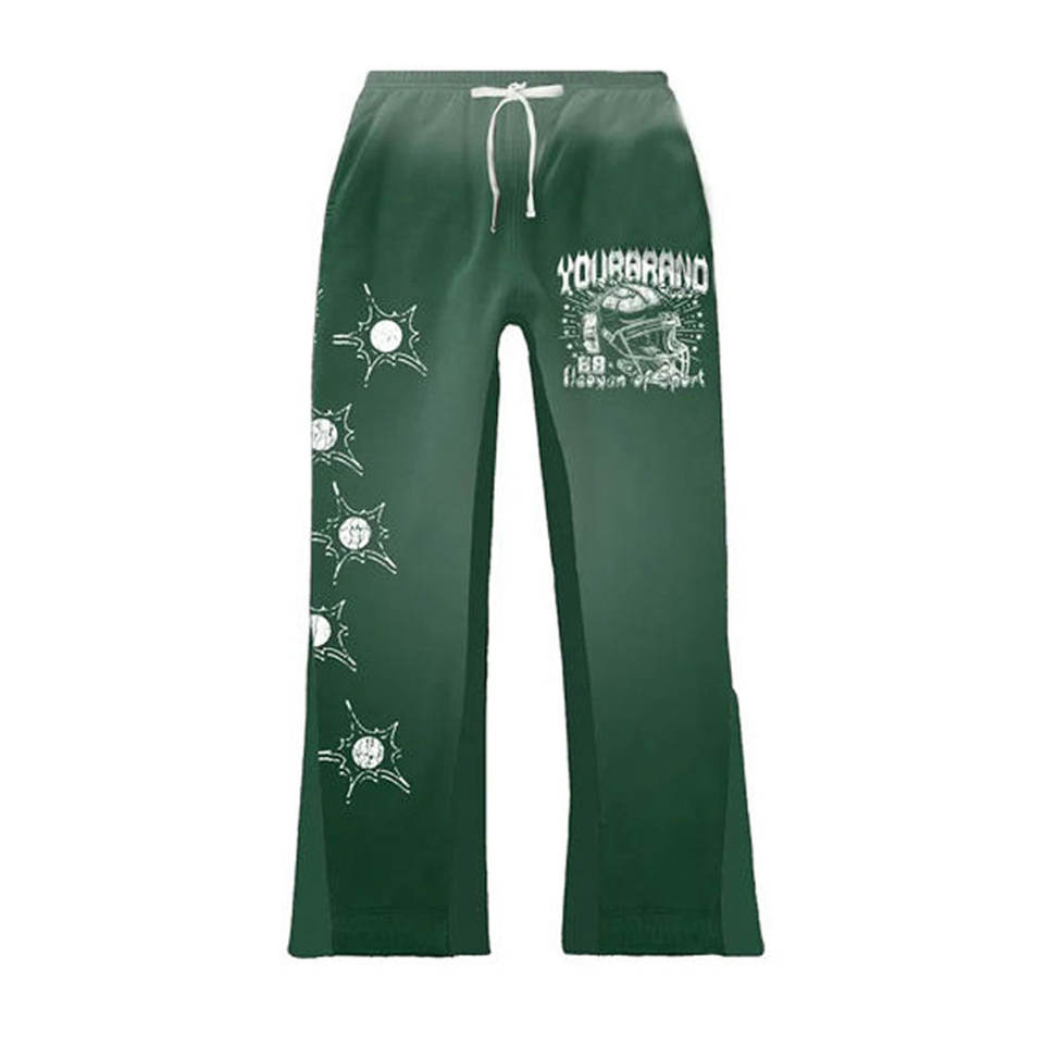Ensemble de survêtement d'hiver grande taille pour homme avec pantalon évasé et empilé, et sweat à capuche, orné d'un patch brodé et d'une applique lettre imprimée sur mesure