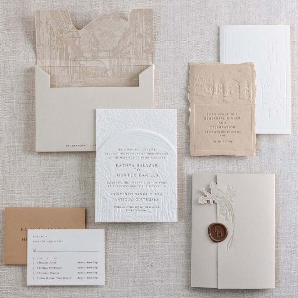 Suite d'invitations de mariage personnalisées imprimées en typographie avec papier fantaisie et carton, vente en gros, révision de conception gratuite pour les organisateurs d'événements