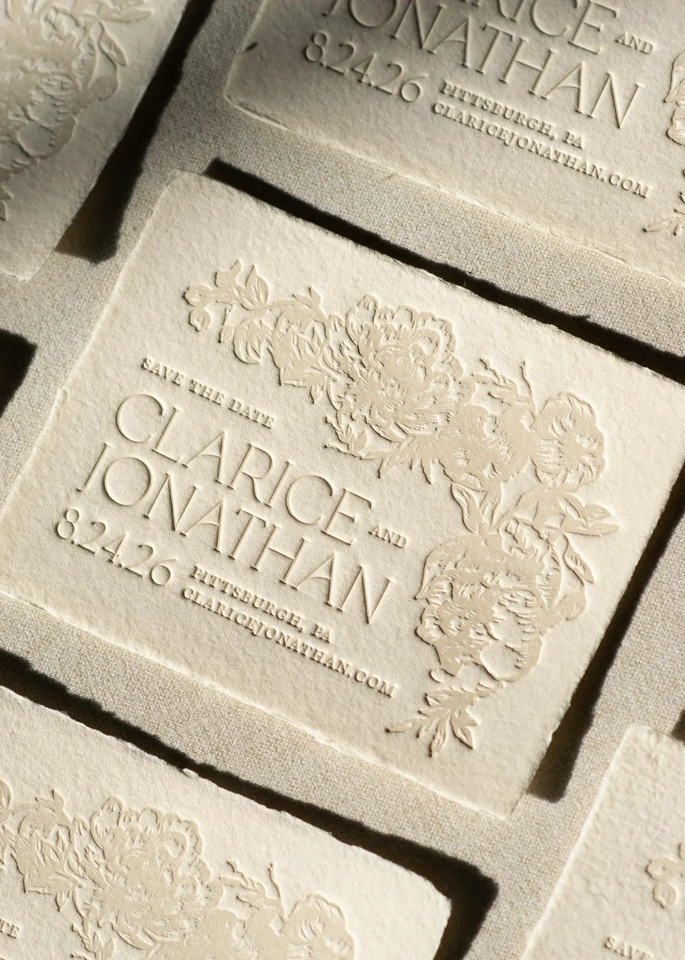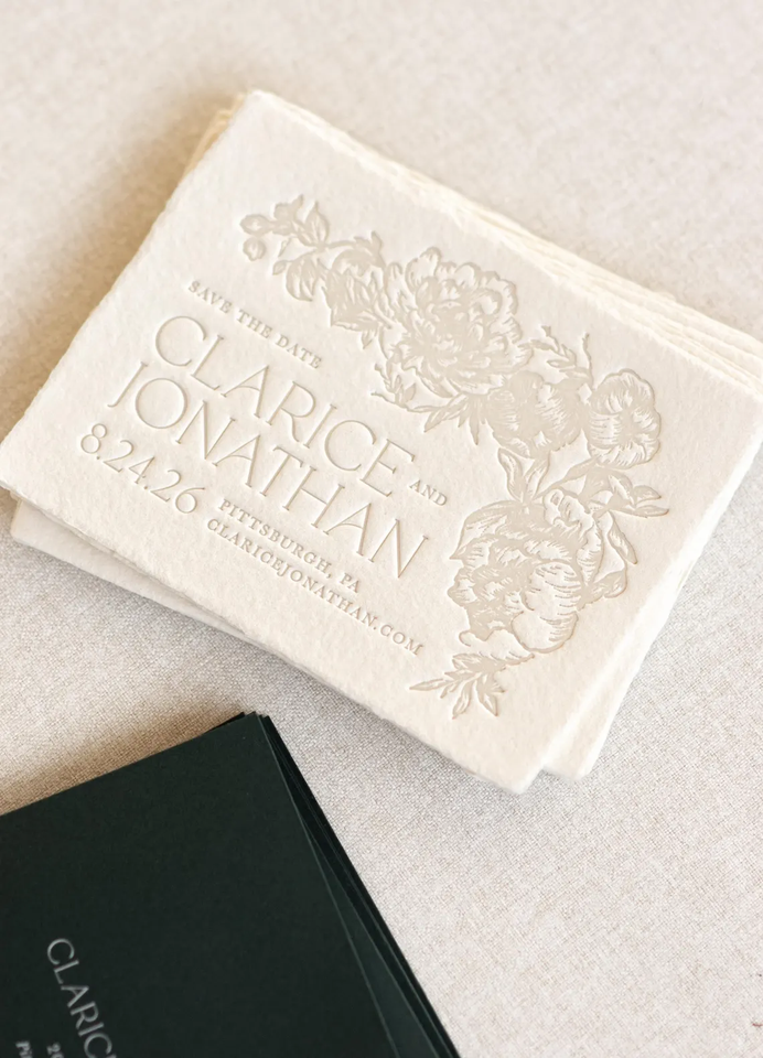 Cartes de mariage et enveloppes personnalisées en typographie, modèle de carte d'invitation de mariage, simple bohème en relief Save-the-date