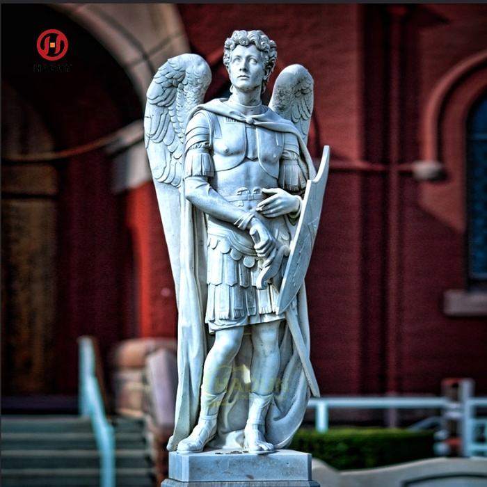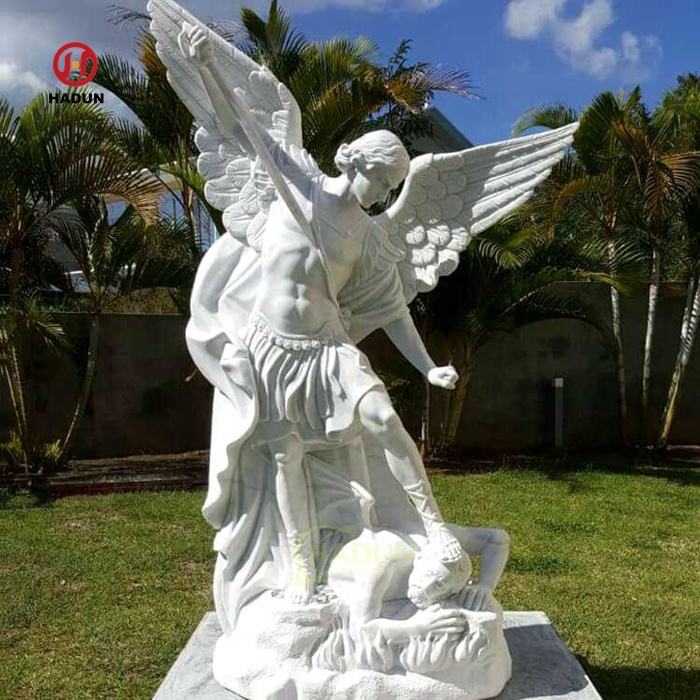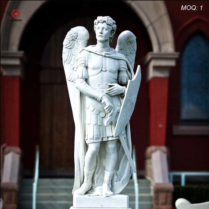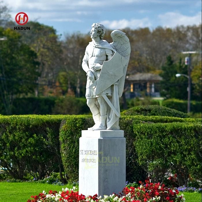 Statue de sculpture de Saint Michel en marbre blanc d'église du Christ grandeur nature personnalisée