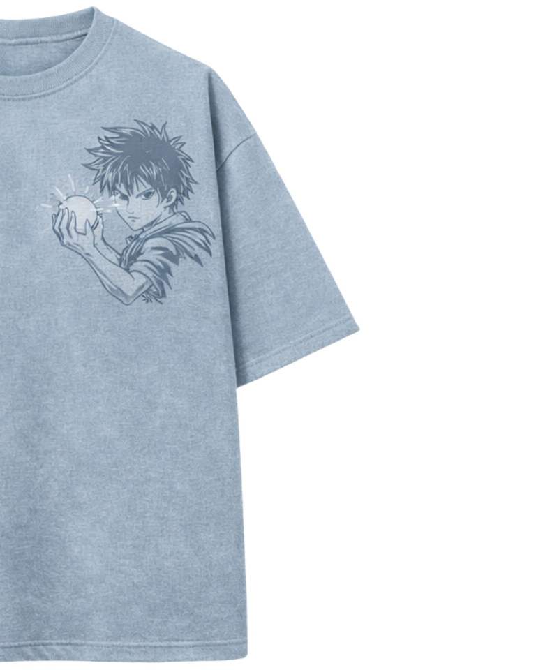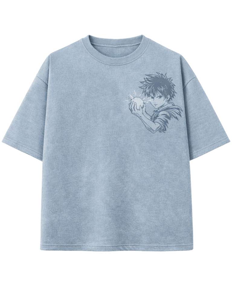 T-shirt graphique anime bleu clair personnalisé pour homme, en coton, coupe oversize, streetwear, imprimé, décontracté, été, logo personnalisé, fabricant OEM