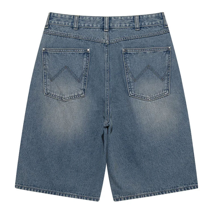 Jean court droit à jambe large bleu clair personnalisé pour hommes Jorts de streetwear lourds de haute qualité avec conception d'impression