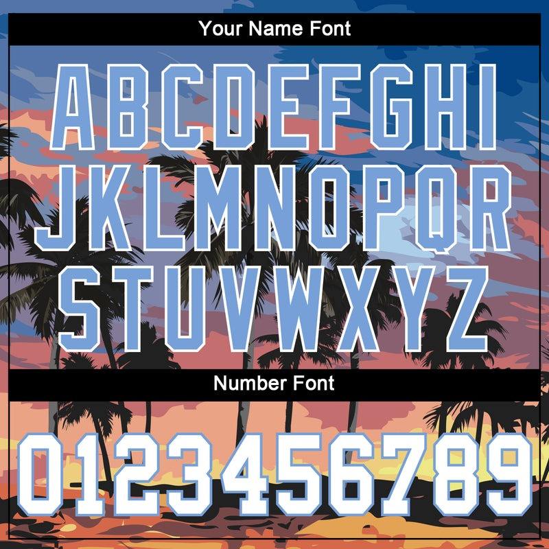 Maillot de baseball personnalisé bleu clair blanc-bleu clair motif 3D palmiers authentiques