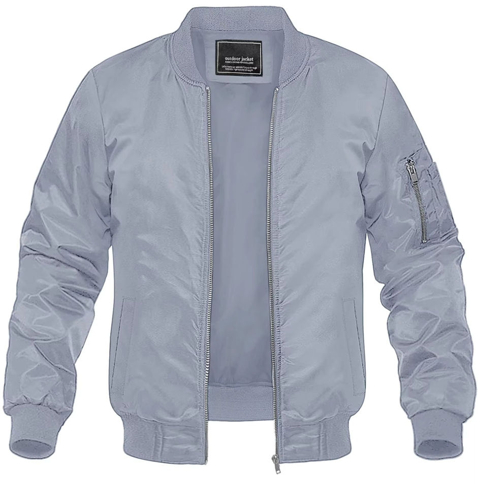 Blouson Bomber Gris Clair Personnalisé Homme Fermeture Éclair Mode Extérieure Streetwear Coupe-Vent Léger OEM ODM Vente en Gros