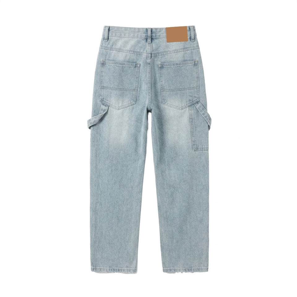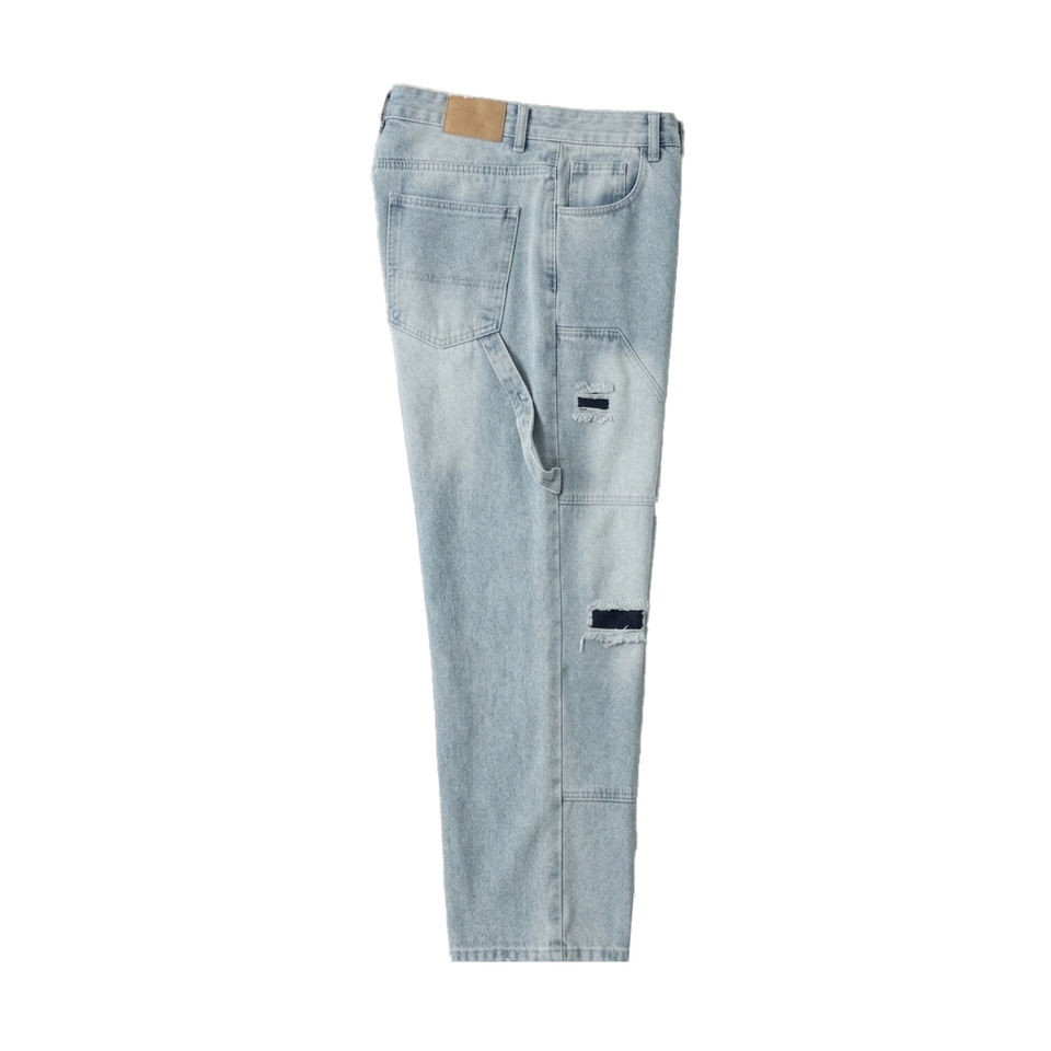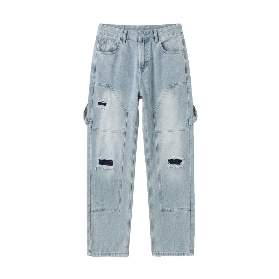 Jean en denim coupe droite pour homme, style japonais, patchwork, délavé léger, respirant, effet vieilli, collection printemps, vente en gros, haute qualité