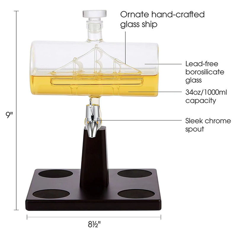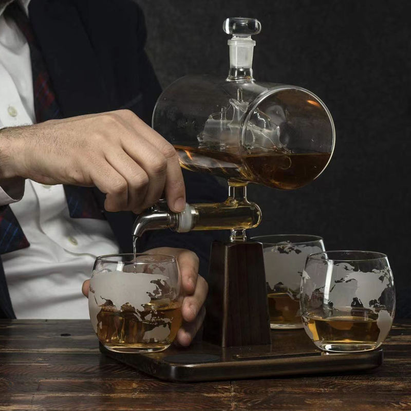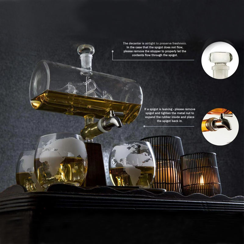 Carafe à liqueur personnalisée avec robinet Carafe à whisky en verre avec 4 verres et plateau