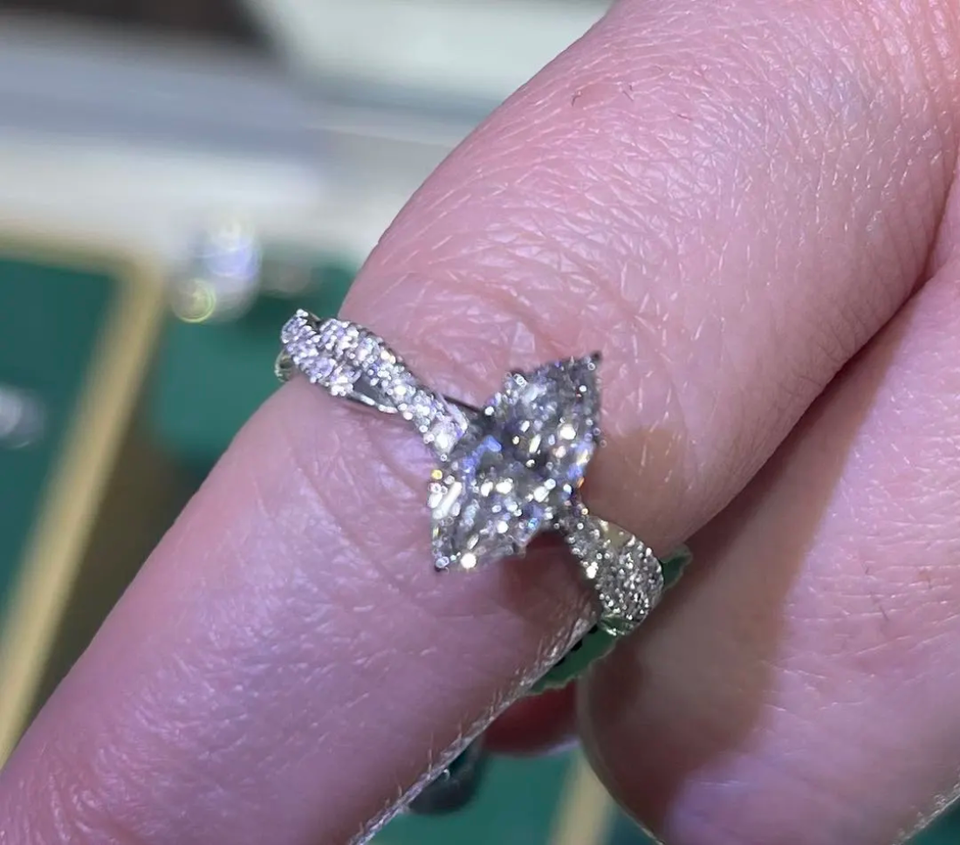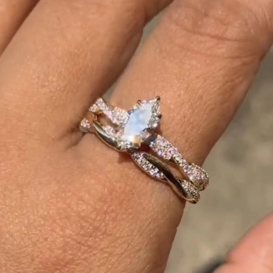 Bague de fiançailles en diamant de laboratoire taille marquise 1 carat avec alliance assortie