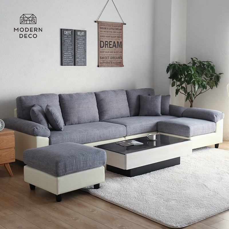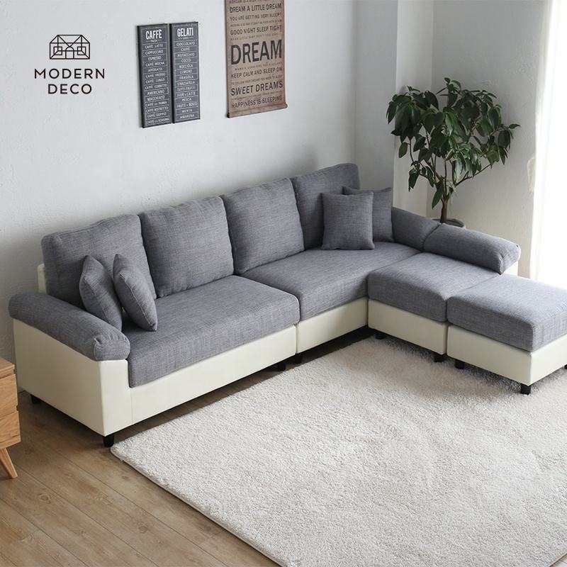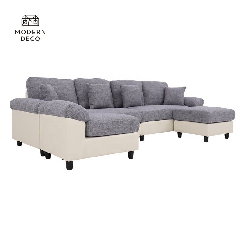 Custom Living Room Convertible Canape L Angle Sofa Corner Couch and Double 2 Ottoman Set U Shaped Sectional