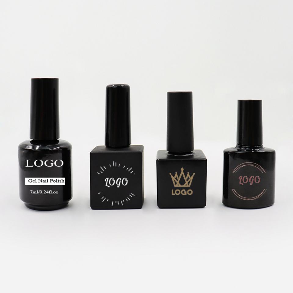 Bouteilles de vernis à ongles vides personnalisées avec logo, 10/15 ml, bouchon à vis, sérigraphiées, en verre dépoli noir, contenants cosmétiques pour gel à ongles artistique