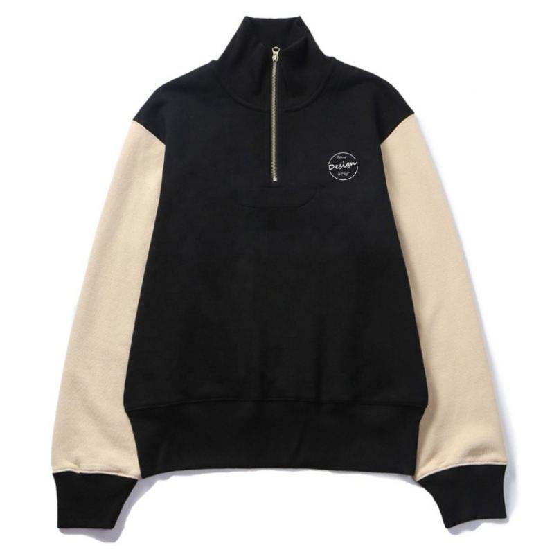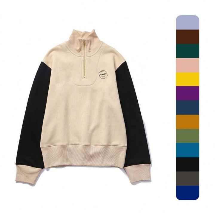Sweat-shirts à capuche zippés en molleton 100% coton avec logo personnalisé, manches patchwork, épaules tombantes, broderie, badge et sequins, style streetwear