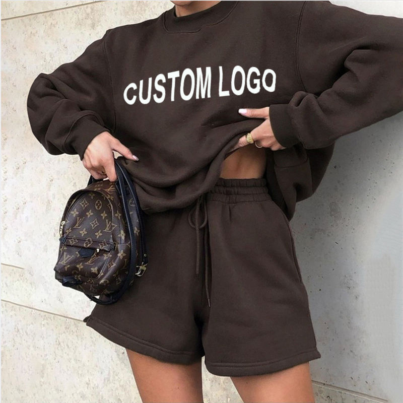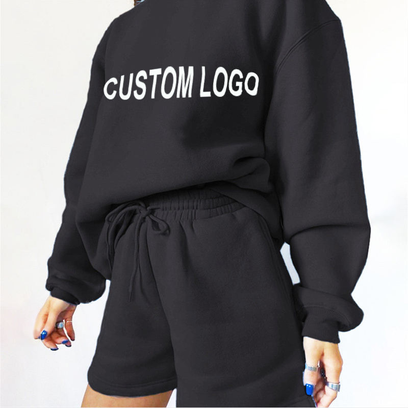 Logo personnalisé 100% coton sweat à capuche et short ensemble deux pièces sweat à capuche shorts costumes shorts décontractés et sweat à capuche jogger ensemble femmes