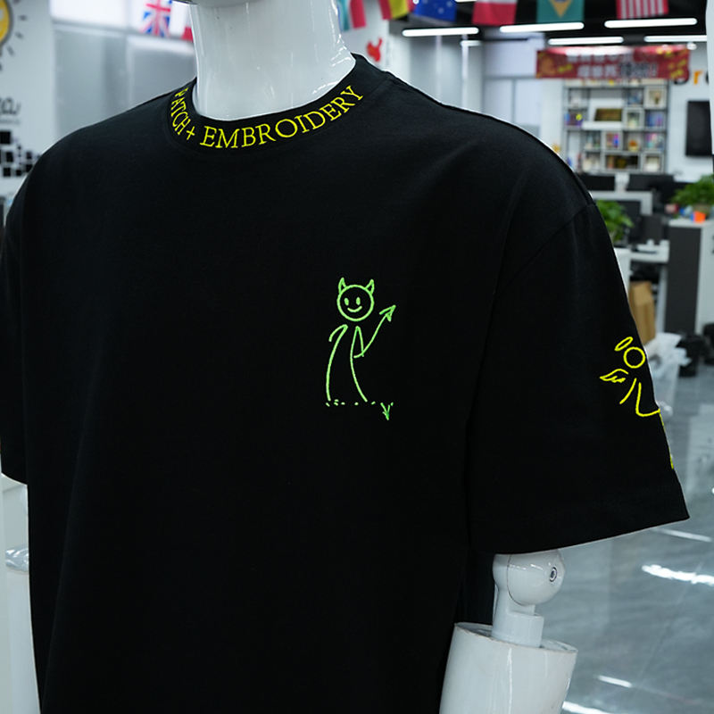 T-shirt surdimensionné en coton 100% avec logo personnalisé, broderie en chenille 3D, anti-UV et respirant pour hommes