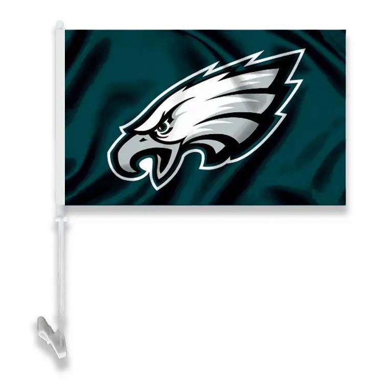 Personnalisé 100% Polyester Football Américain Club Sports Nfl Drapeaux De Voiture Fenêtre En Gros Chiefs 49Ers Raiders Eagles Avec Mât De Drapeau