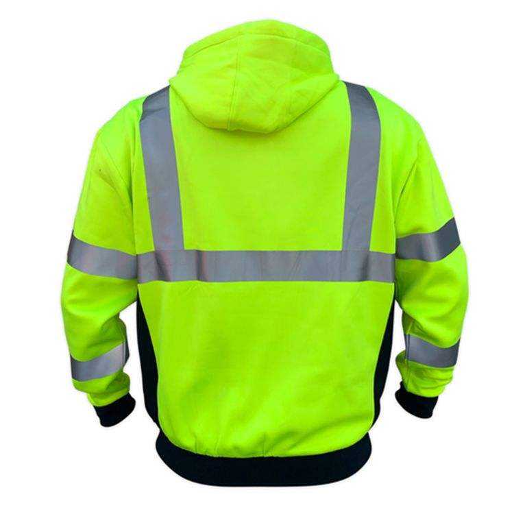 Custom Logo 100% Polyester Construction Hooded Pullover Hi Vis Work Wear with High Visibility Reflective Print Size XS
