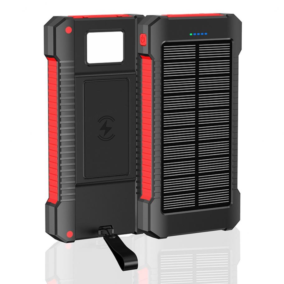 Batterie externe sans fil 10000 mAh avec logo personnalisé, double USB 15W, panneau solaire et lumière LED