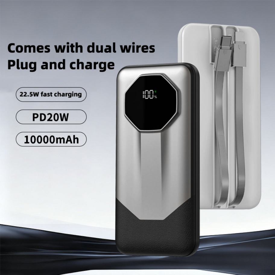 Batterie externe personnalisée avec logo, 10000 mAh, double USB, charge rapide, 20000 mAh, haute capacité, avec câbles pour les voyages en plein air