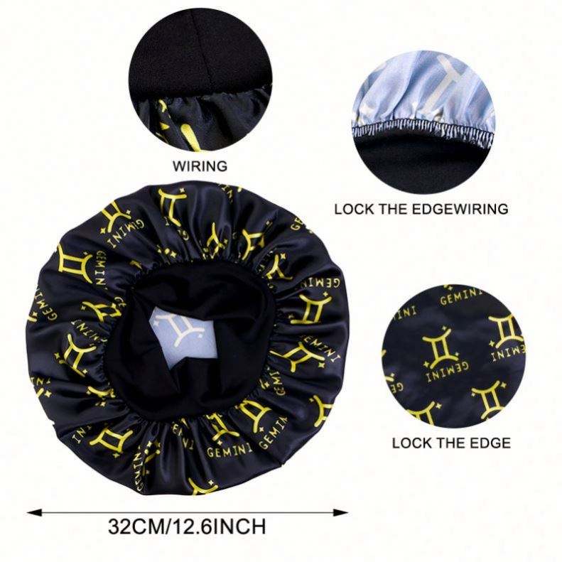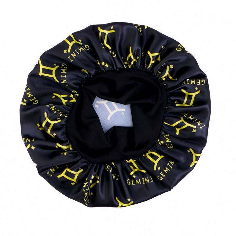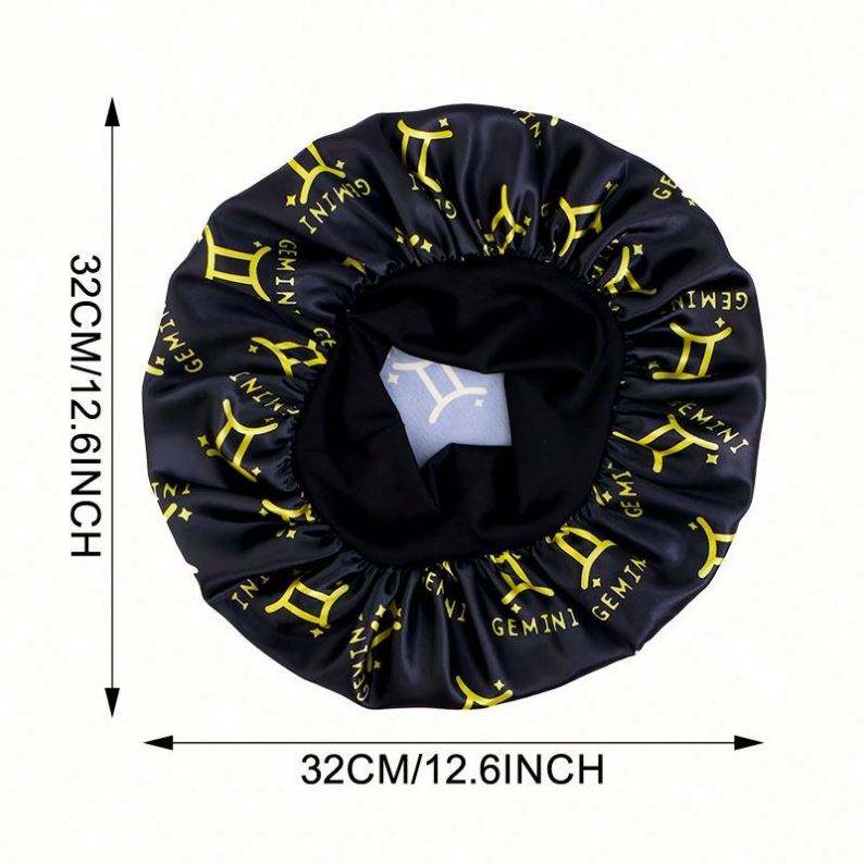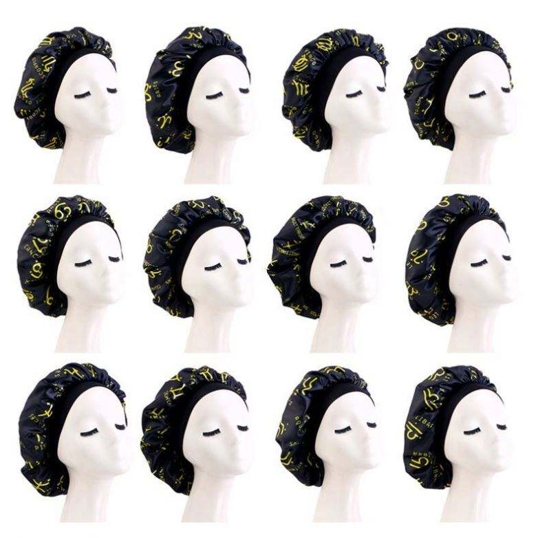 Bonnet en satin imprimé avec logo personnalisé et 12 signes du zodiaque, large bande, taille extra, pour femme, usage quotidien extérieur, toutes saisons, pour cheveux