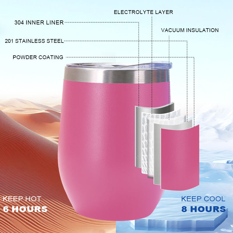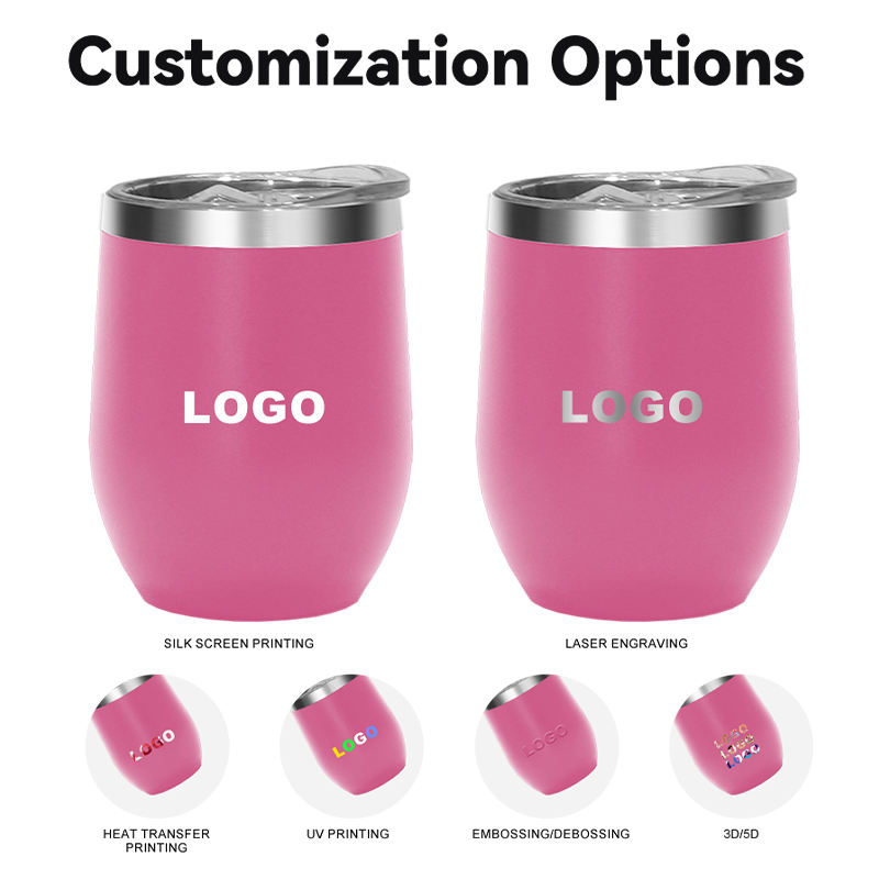 Gobelet à vin isotherme en acier inoxydable de 12 oz en forme d'œuf avec logo personnalisé, couvercle de voyage, sans BPA, écologique