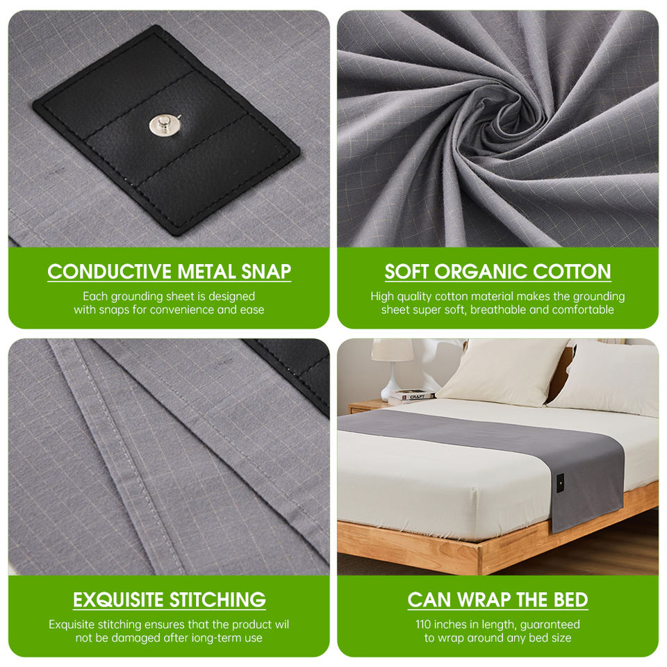Draps plats en tissu maillé argenté à 15 % avec logo personnalisé, avec cordon de mise à la terre pour une guérison naturelle, certifiés OEKO