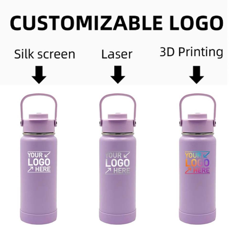 Custom Logo 1L Stainless Steel Insulated Vacuum Flask 32oz Powder Coated Sports Camping Water Bottles 2-in-1 Straw and Spout Lid