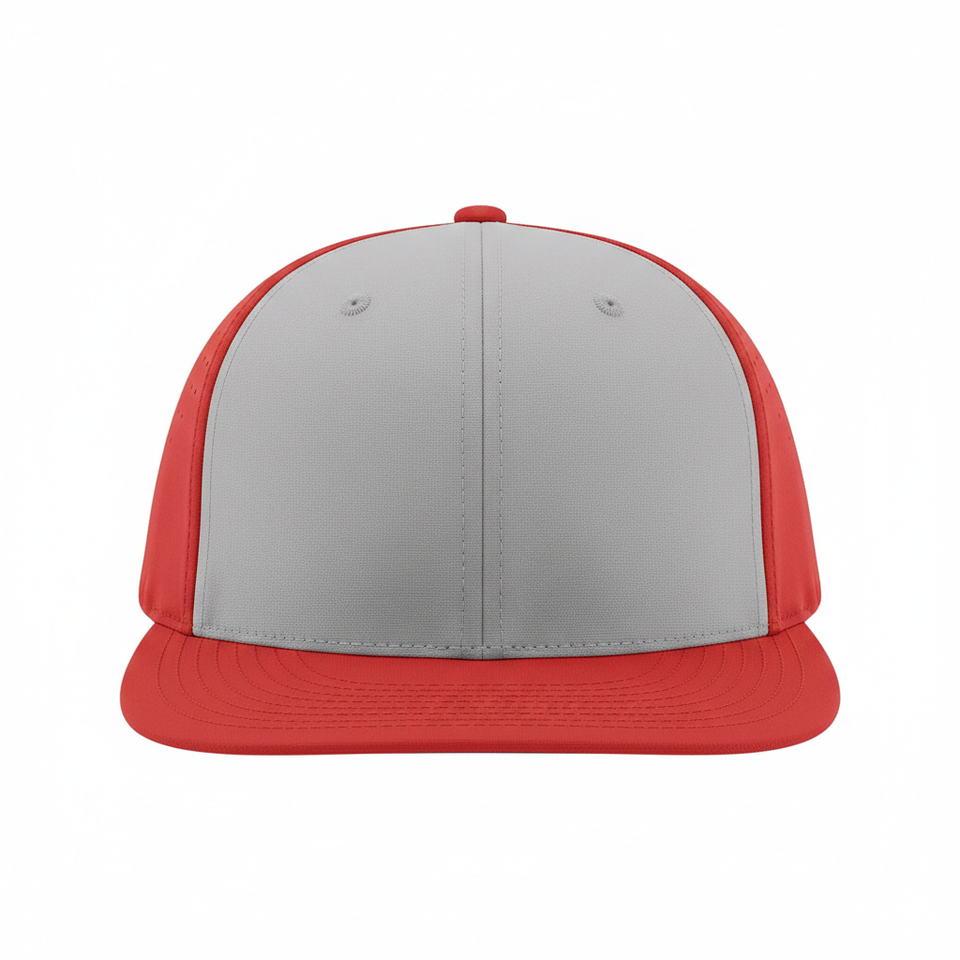 Casquette de baseball imperméable gris-rouge bicolore avec logo personnalisé, trous d'aération découpés au laser, 6 panneaux, casquette de sport à visière incurvée, snapback, style hip-hop