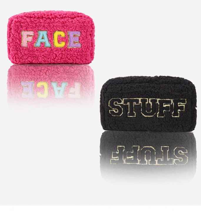 Custom Logo 2024 New Plush Chenille Embroidered Makeup Bag Large Capacity Winter Toiletry Storage Cosmetic Bag for Lady Girls