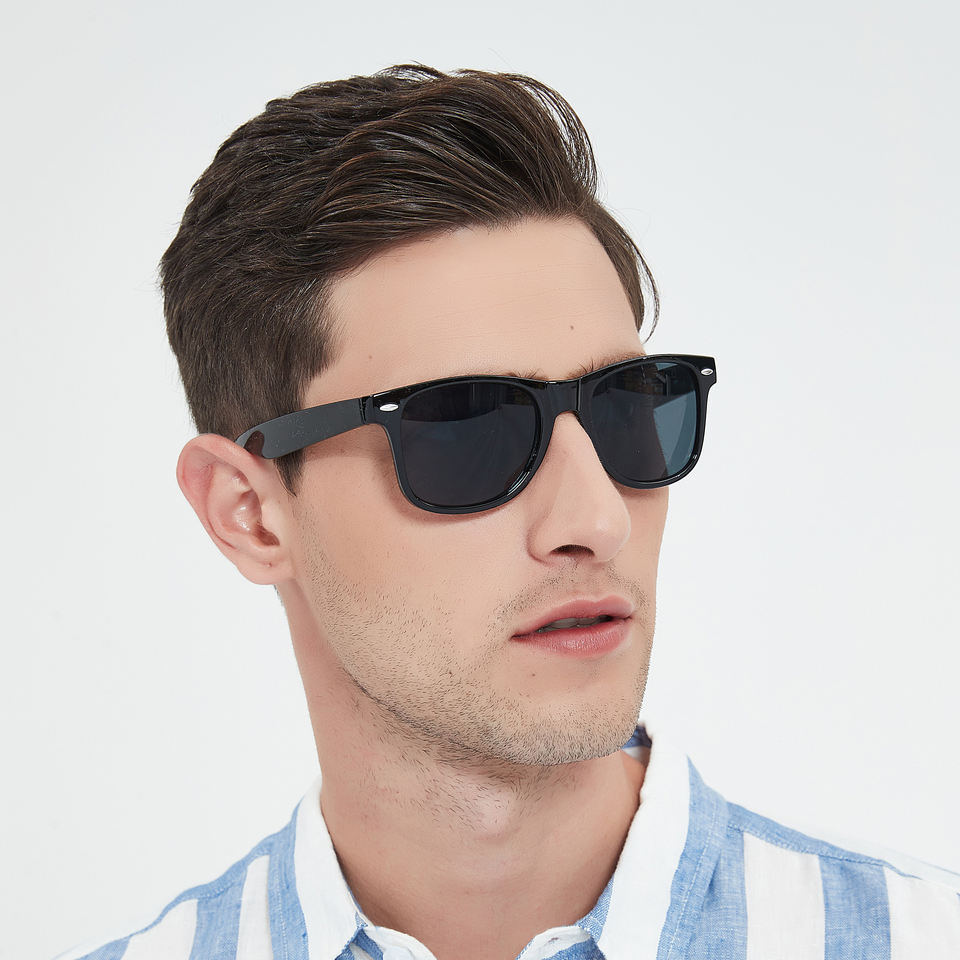 Lunettes de soleil carrées noires en plastique recyclé avec logo personnalisé 2025, lunettes de soleil promotionnelles personnalisées pour hommes et femmes