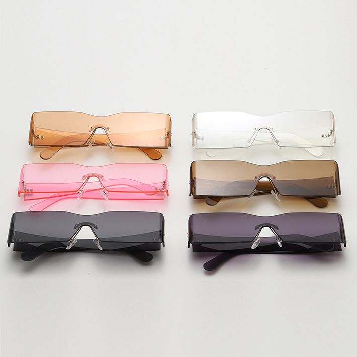 Lunettes de soleil carrées sans monture, légères, avec logo personnalisé, tendance 2025, verres monobloc, UV400, pour femmes et hommes