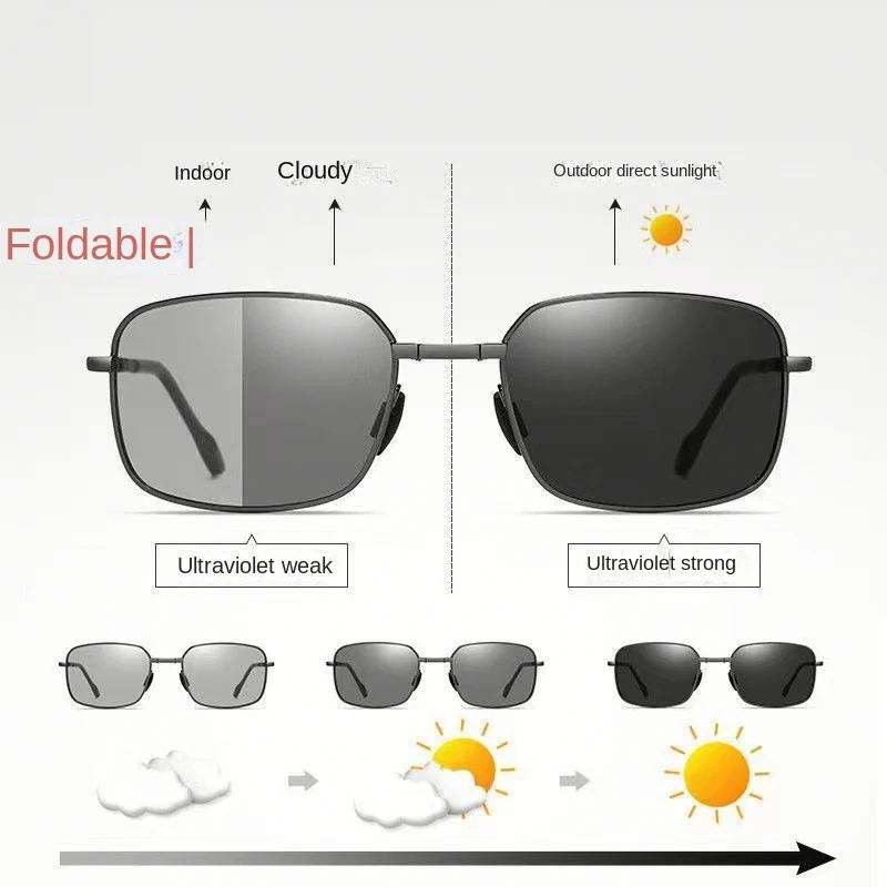 Lunettes de soleil photochromiques pliables avec logo personnalisé, monture métallique portable, protection UV400, polarisées, pour hommes, collection 2025