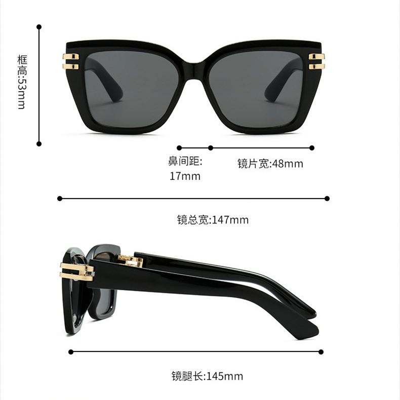 Lunettes de soleil œil-de-chat noires pour femmes, monture carrée grande taille, haute qualité, protection UV400, avec logo personnalisé 2025