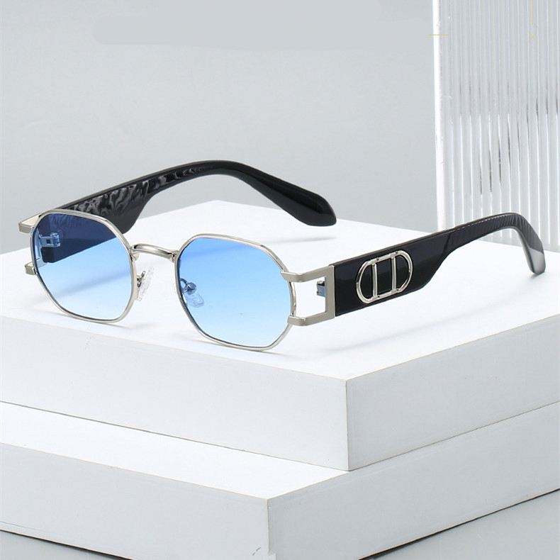 Lunettes de soleil polygonales tendance rétro 2025 avec logo personnalisé, monture métallique carrée en alliage UV400 pour hommes et femmes