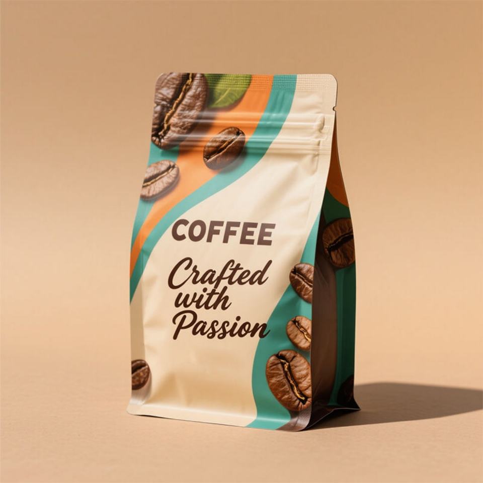 Sachet de café personnalisé avec logo, 250g, qualité alimentaire, anti-humidité, thermoscellable, fond plat, pochette d'emballage de café autoportante avec valve et fermeture éclair