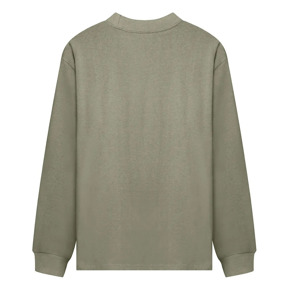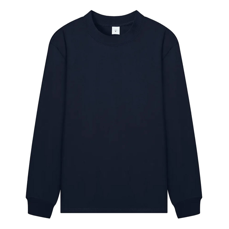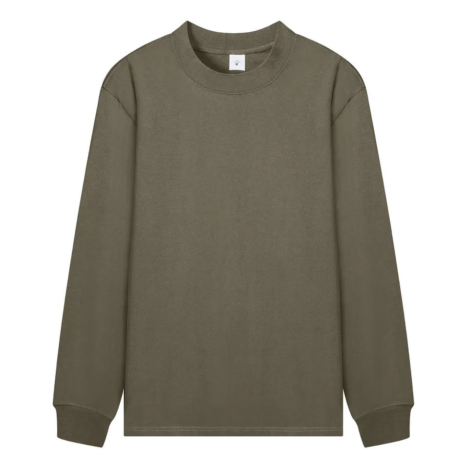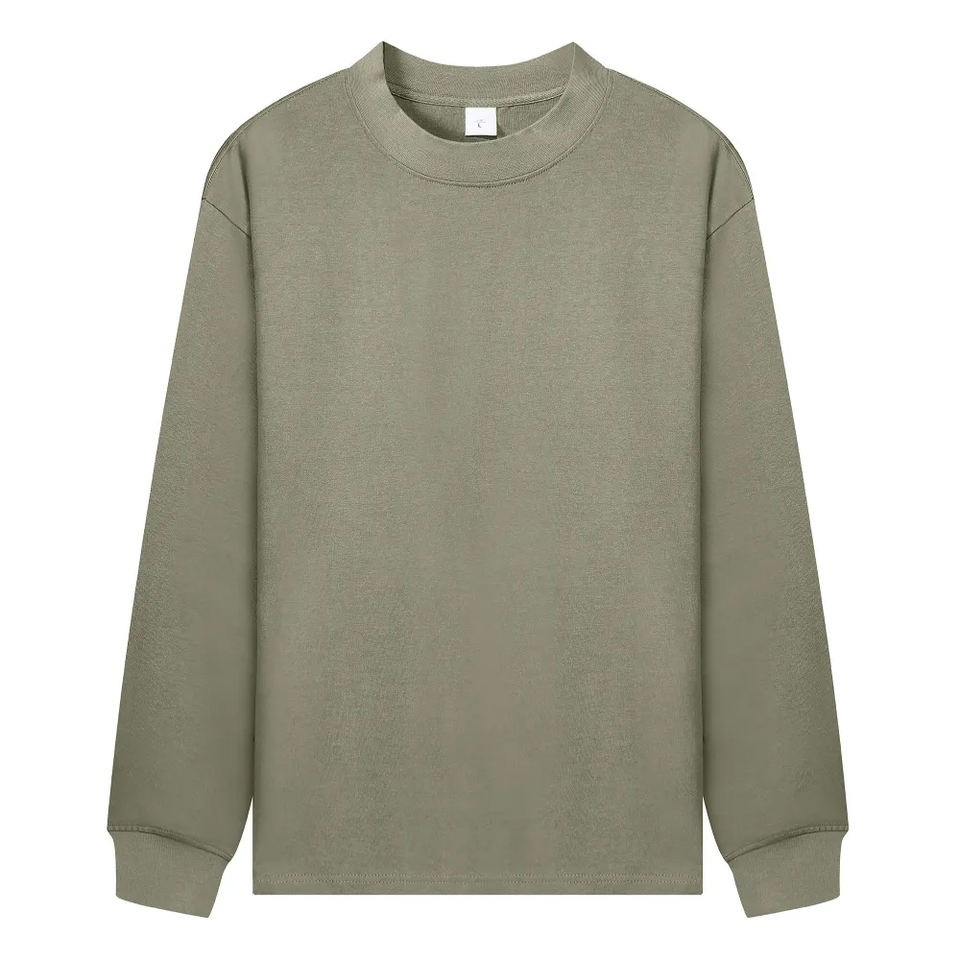 T-shirt à manches longues en coton 100% de 260 grammes, col montant, style streetwear, coupe ample unisexe, anti-UV, avec logo personnalisé