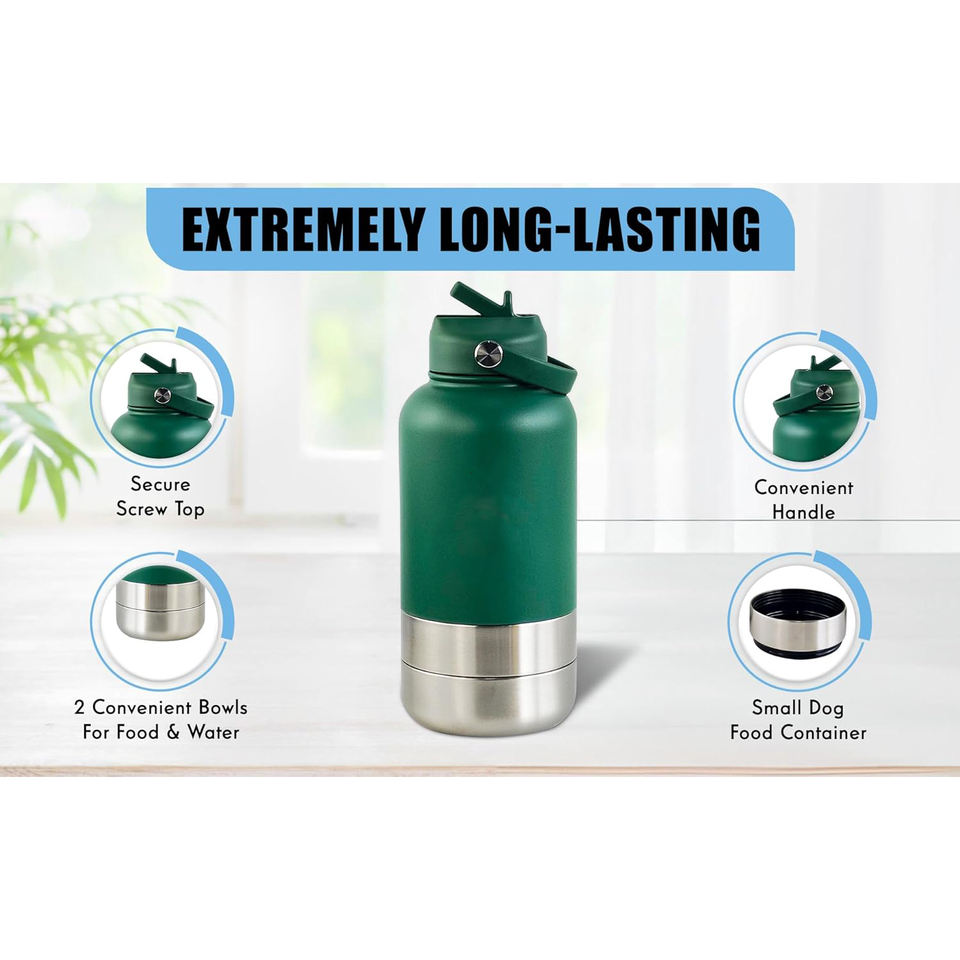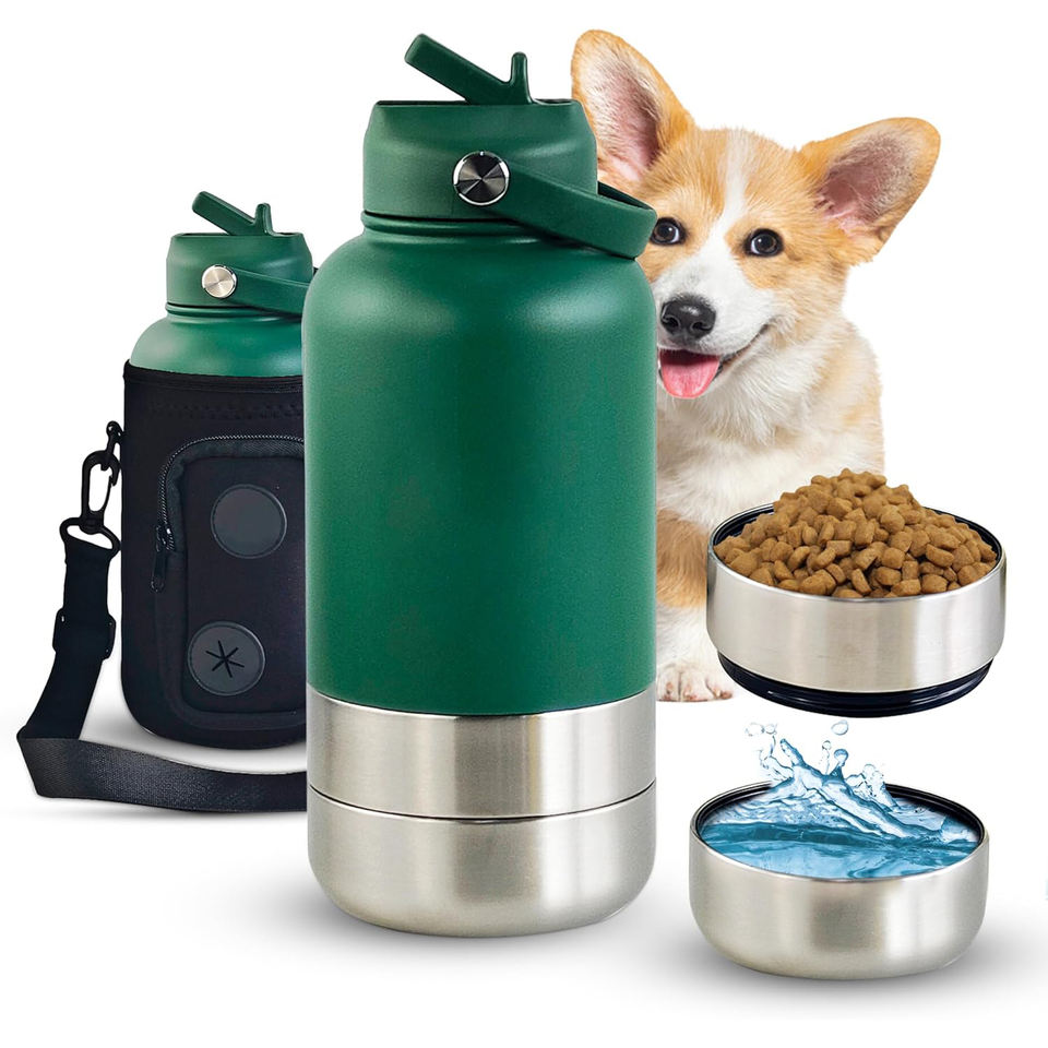 Bouteille d'eau portable 3-en-1 en acier inoxydable pour animaux de compagnie avec logo personnalisé et récipient alimentaire pour voyages et activités extérieures
