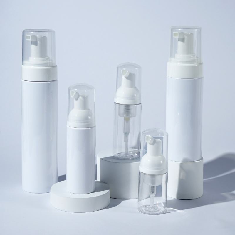Flacon pompe en PET pour nettoyant moussant, mousse nettoyante pour le maquillage, sérum pour le soin de la peau, avec logo personnalisé, 30 ml, 50 ml, 100 ml, 150 ml
