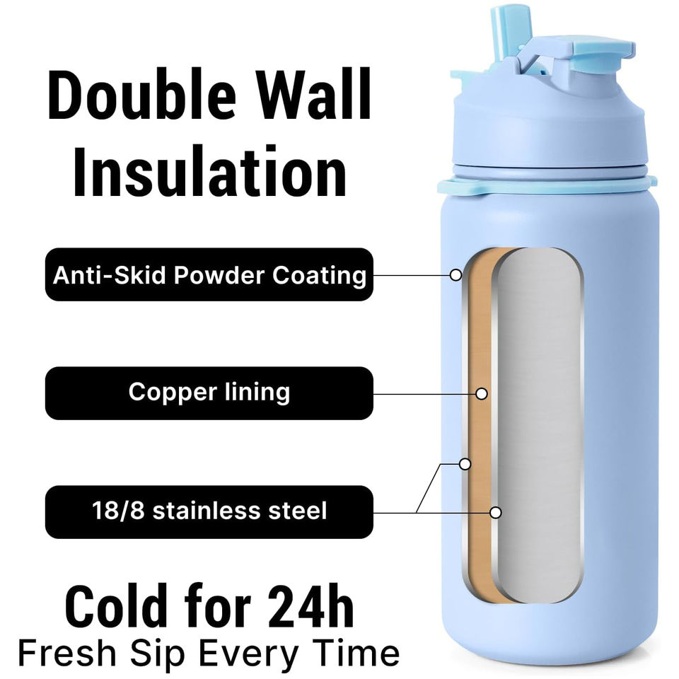 Bouteille d'eau isotherme thermos de sport avec 3 couvercles et brosse