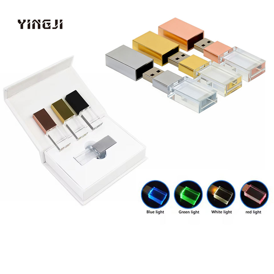 Clé USB en verre cristal 3.0 avec logo personnalisé gravé en 3D, 2.0, 2 Go, 4 Go, 8 Go, 16 Go, 32 Go, 64 Go, avec boîte blanche