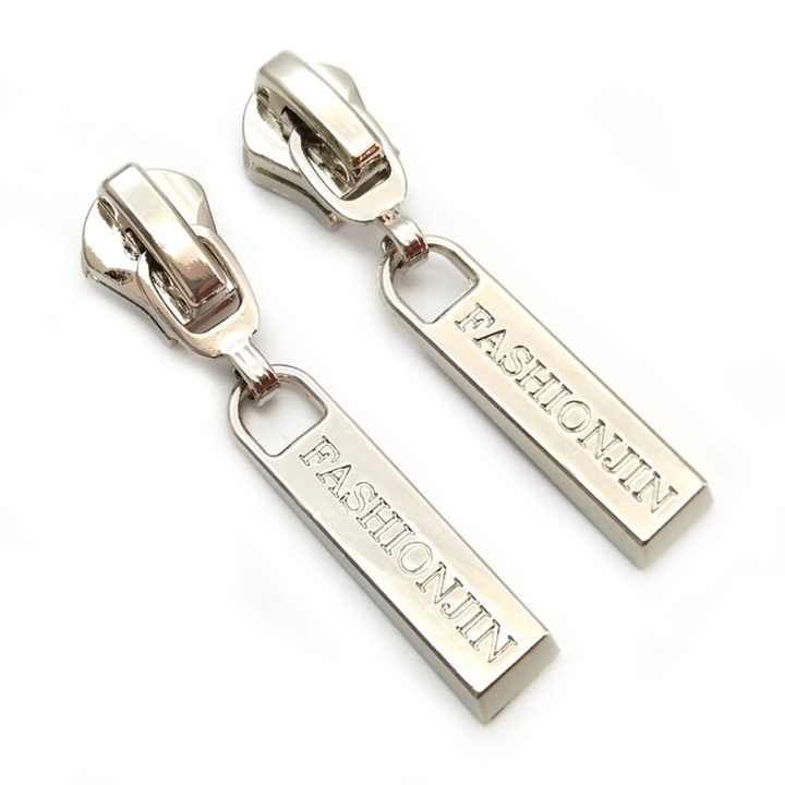 Tirette de fermeture éclair en métal gravée en 3D avec logo personnalisé, curseur à verrouillage automatique avec placage sans nickel