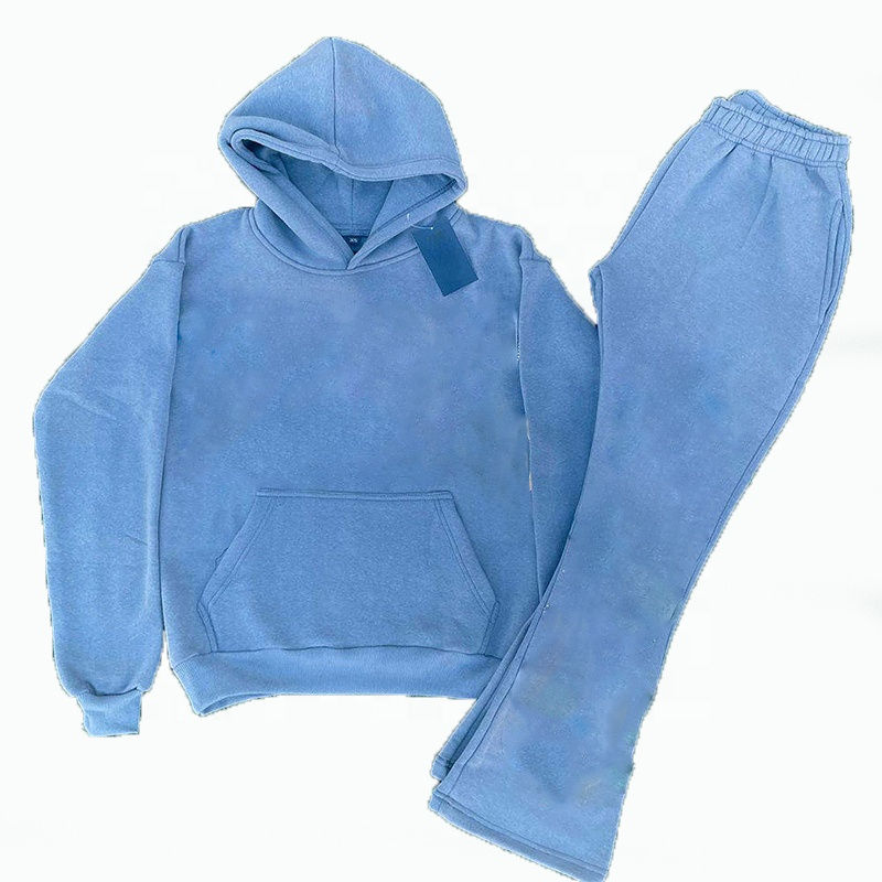 Ensemble de survêtement d'hiver personnalisé avec logo 3D en strass, pantalon évasé respirant et sweat à capuche 100 % coton léger pour homme