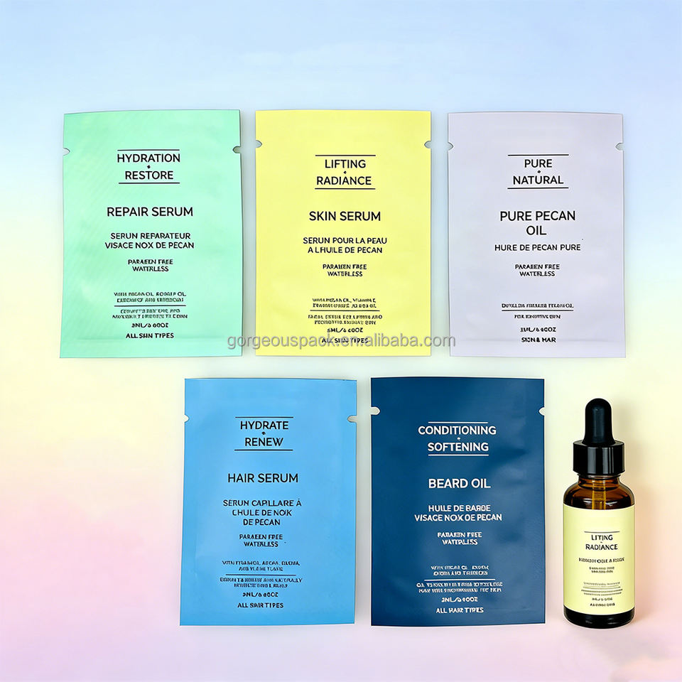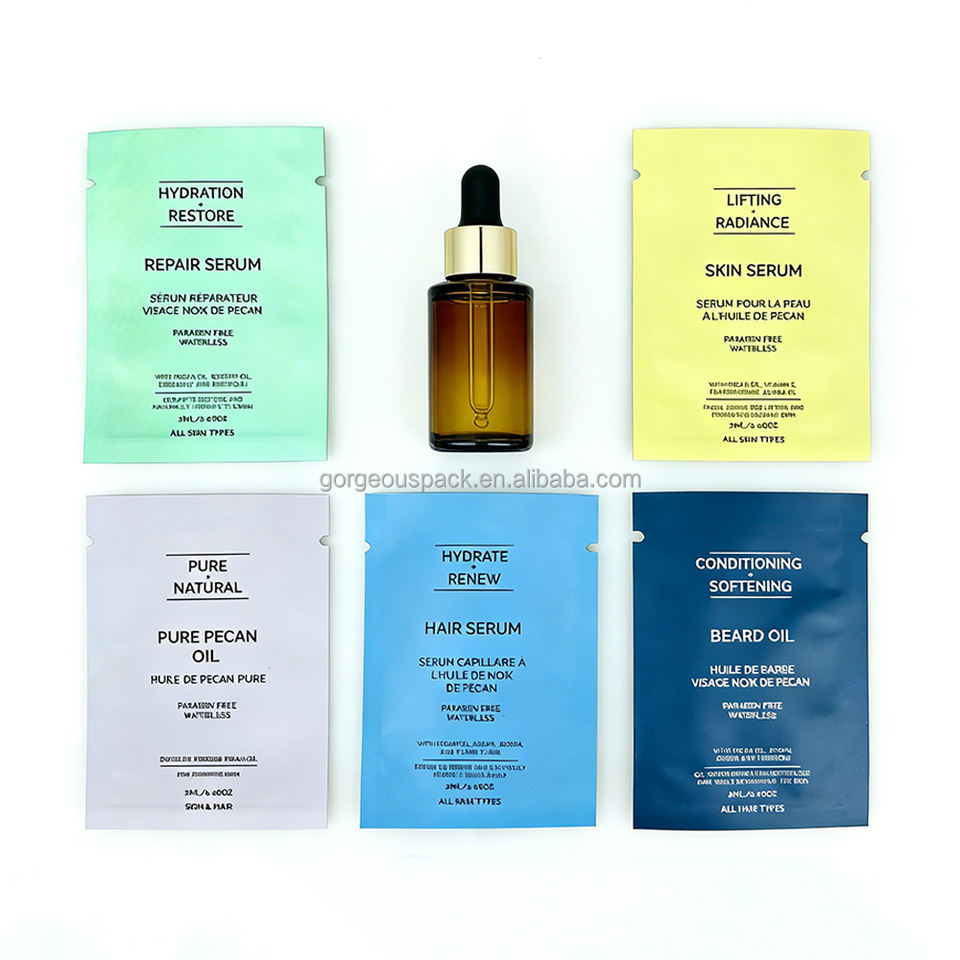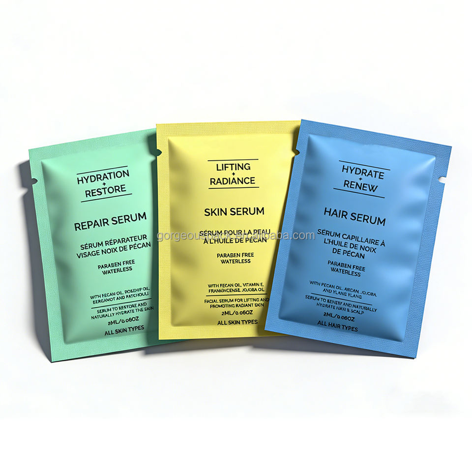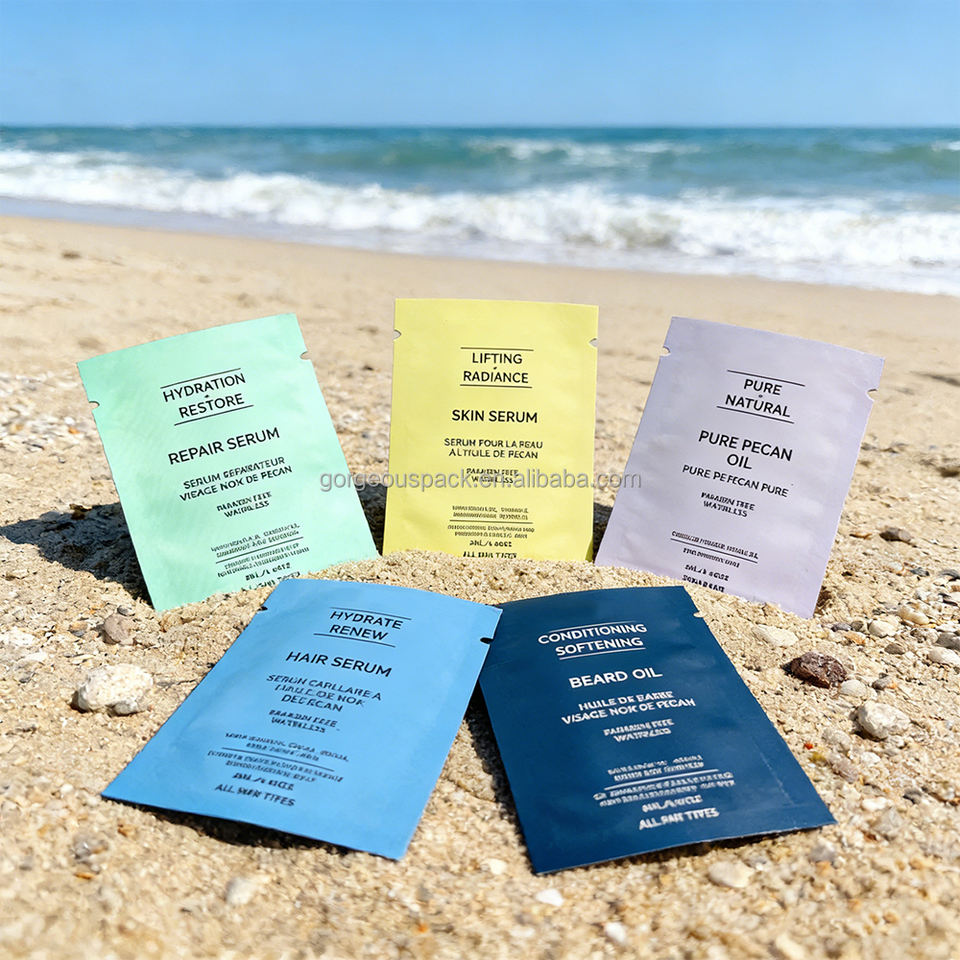 Sachet d'emballage cosmétique en aluminium pour échantillons de crème et de poudre, matériaux 100 % recyclables, avec logo personnalisé, 3 ml, 5 ml, 10 ml