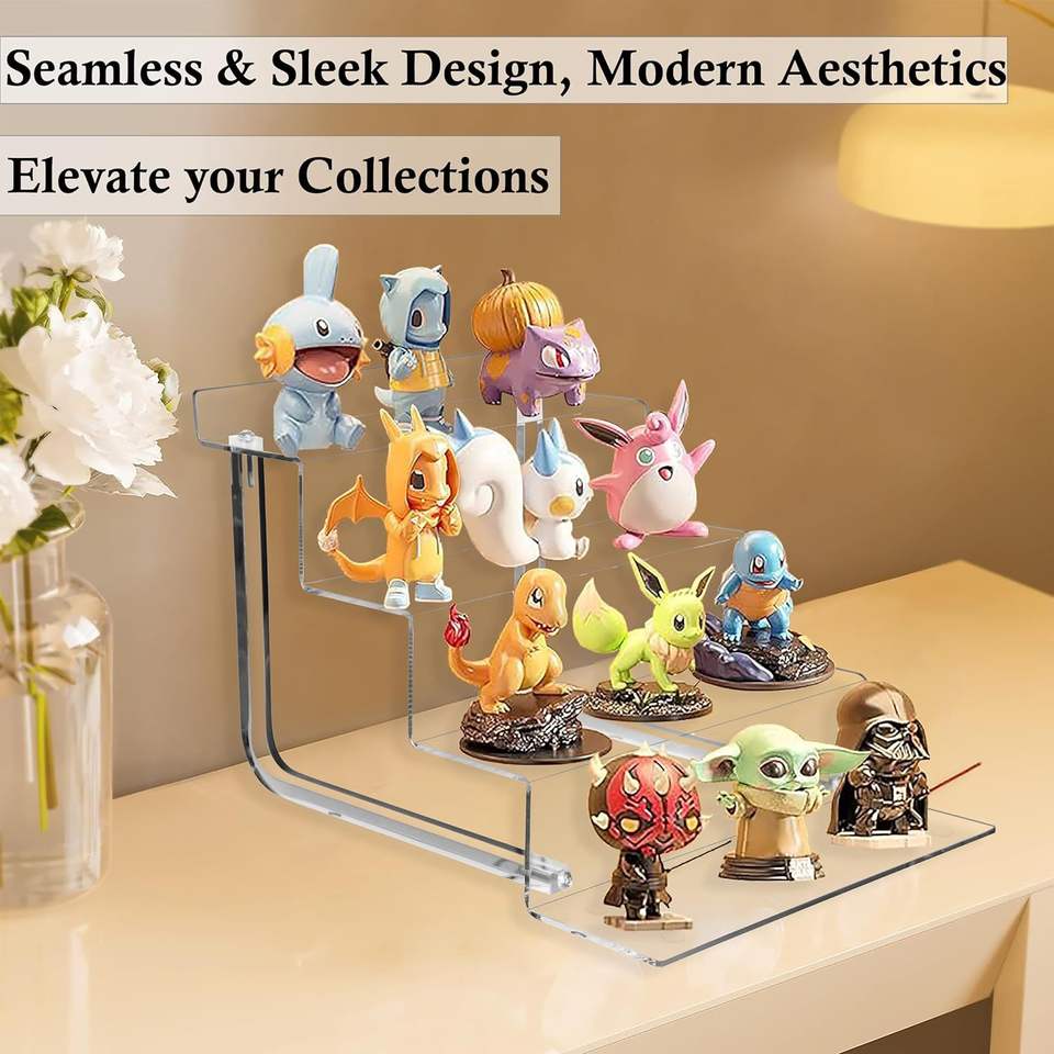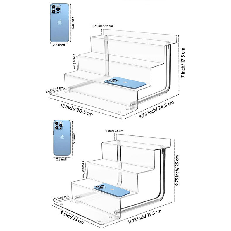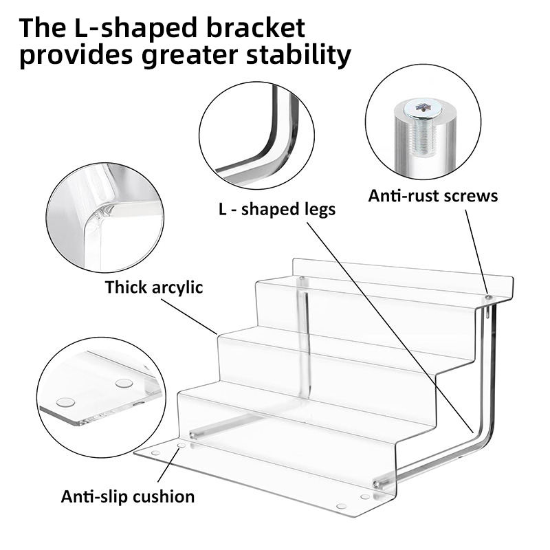 Logo personnalisé 4 Niveaux Transparent Parfum En Forme De L Riser Présentoir En Acrylique Escaliers Présentoir pour Figurines Jouets