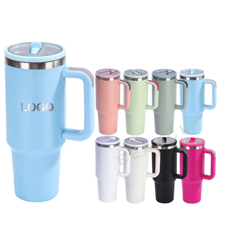 Gobelet isotherme en acier inoxydable à double paroi de 40 oz avec logo personnalisé, paille rabattable, anti-fuite, sans BPA, tasse de voyage