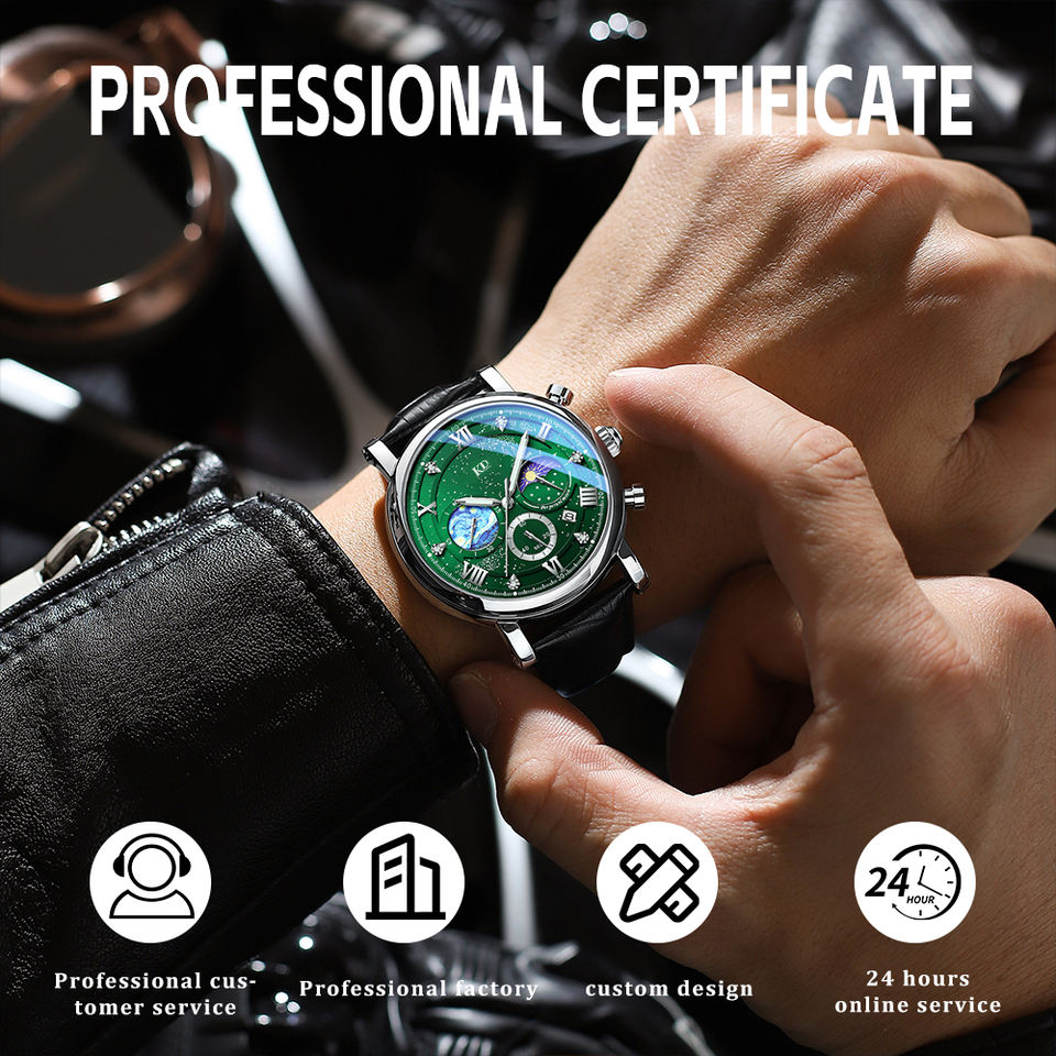 Montre à quartz chronographe de luxe pour homme, avec logo personnalisé, bracelet en cuir, cadran à aiguilles, calendrier lumineux, étanche, mode business, 44 mm, alliage