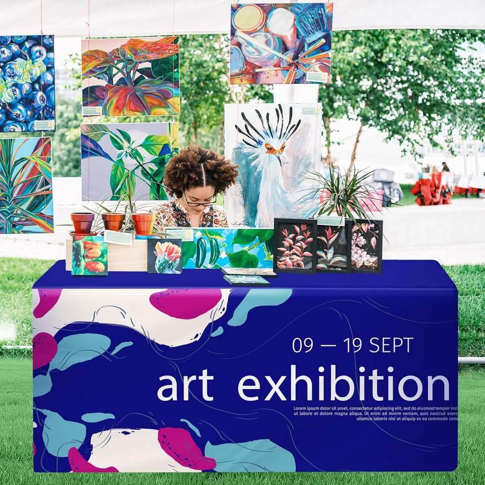 Housse de table rectangulaire ajustée en polyester durable avec logo personnalisé, 4, 6 et 8 pieds, toutes couleurs, pour salons professionnels, événements commerciaux, publicité