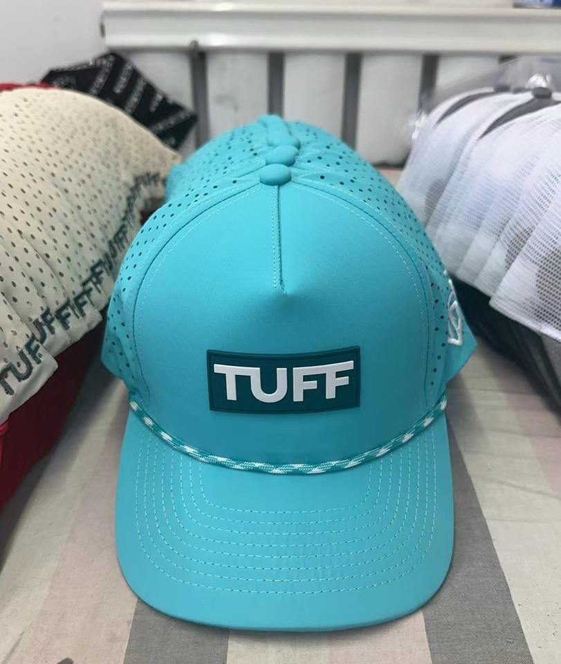Casquette de baseball en polyester à 5 panneaux avec logo personnalisé Casquette de baseball de golf de performance imperméable et sportive en plein air Casquette de baseball avec trou découpé au laser
