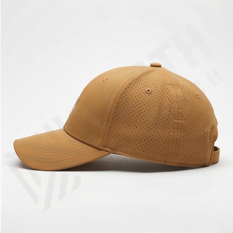 Casquette de sport de golf en polyester imperméable à 5 panneaux avec logo personnalisé, trous perforés au laser, casquette de baseball respirante, taille réglable